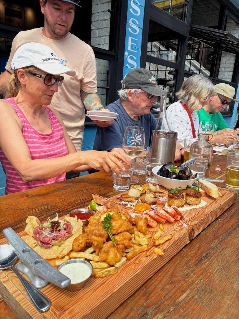We breakfasted at a pleasant restaurant within walking distance, where Ali has been working (50% discount!). Then we crossed to Granville Island—markets, etc. We had an enjoyable light dinner at Glenn’s Yacht Club, near where their boat is moored, just down the road from their townhouse. It’s all so conveniently located.