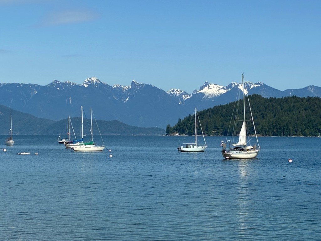 In the evening, we headed back to Vancouver by an alternative sea route encircling Bowen Island. Lovely views of snow-capped mountains – an interesting approach to the city. An enjoyable dinner at a local Italian restaurant with Glenn, Jill, later joined by the ever sparkling daughter, Ali.
