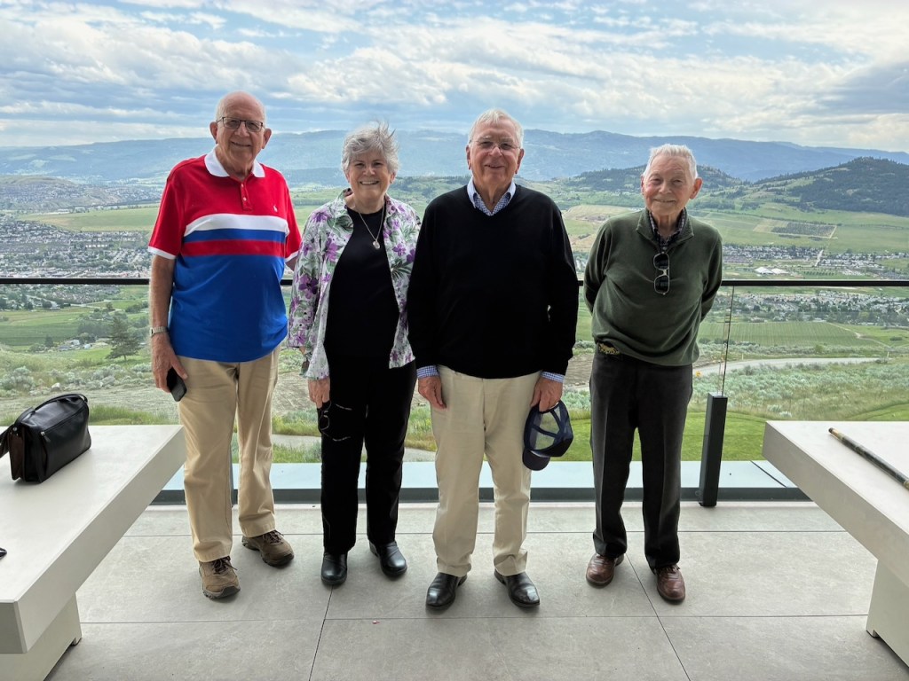 We headed north up the Okanagan Valley. Picturesque towns – Penticton, Summerland, Peachland, surrounding the various lakes. At a sparkling Kelowna, we crossed to the east side of the lake and caught up and lunched with Chad’s likeable mate Joe Altwasser. Then a fast drive off the main route along the western side of the Okanagan Lake into the modern city of Vernon. Caught up with Ted’s daughter Joanne, husband Rolfe and their lovely daughter Anna, at the ever so comfortable adjoining residences, built on what used to be part of the Coldstream Ranch range. The country looks lush. I am suffering from a very sore throat – Covid?